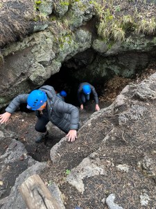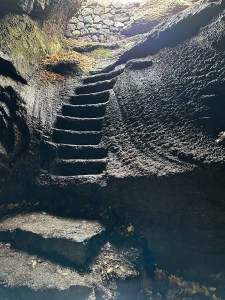 We stopped in the middle of a birch tree forest and got out of the minivan. Pepe took us to a series of caves formed by lava, called lava tubes. Apparently, the locals stored ice in them for centuries and we donned hard hats and descended the steep stone stairs into one of the lava tubes, walking about 100 metres through the cave and ascending at another point.