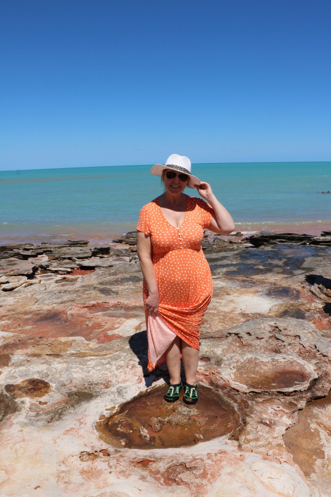 We took a cruise across Roebuck Bay to a secluded beach where dinosaurs left their footprints in the clay that subsequently turned to rock. We literally walked in the footsteps of the dinosaurs. It was very cool. Broome has the highest number of dinosaur footprints in the world, by far.