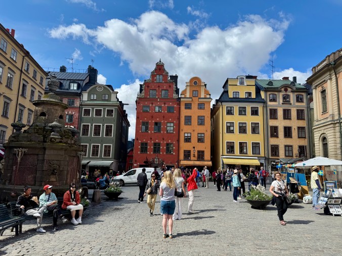 We arrived in Stockholm just after lunch and checked into our hotel in the old town. Stockholm is very picturesque. The old town is built on a small island where brightly coloured houses line the narrow, cobblestoned streets. You could be walking on a street in a little town in Tuscany. We wandered around enjoying the atmosphere and being entertained by the myriad tik-tokkers doing their usual various poses for Instagram.
